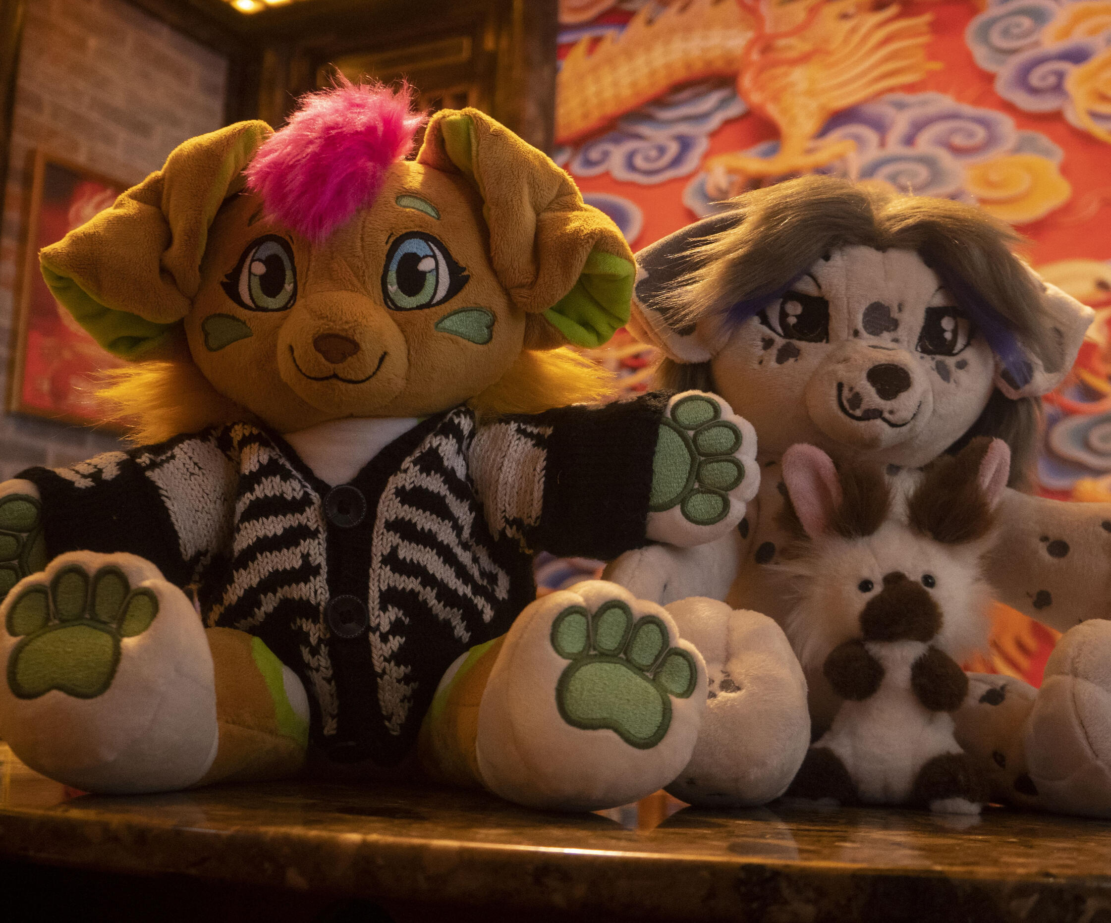 I'm mainly responsible for the fursuit making, plushies, puppets, figures, and artworks!